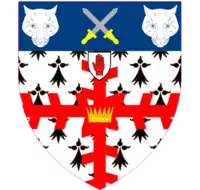 ![]() ![]() Ermine, on a cross raguly gules an eastern crown or, on a chief azure two swords in saltire proper, pommels and hilts gold, between as many leopard's faces argent | |