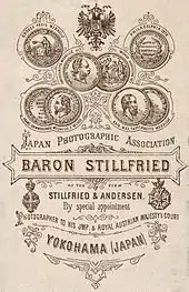 Baron Raimund von Stillfried, also known as Baron Raimund von Stillfried-Rathenitz (6 August 1839, in Komotau, Bohemia – 12 August 1911, in Vienna, Austrian-Hungarian Empire), was an Austrian military officer and early professional photographer in Japan. His historical photographs of Japan following the end of the Tokugawa shogunate in the 1870s have been appreciated for their documentary and artistic value and collected in international archives.
