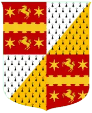 Baron Vaux of Harrowden is a title in the Peerage of England. It was created in 1523 for Sir Nicholas Vaux.[2] The barony was created by writ, which means that it can pass through both male and female lines. Vaux was succeeded by his son, the second Baron. He was a poet and member of the courts of Henry VIII and Edward VI. The Vaux family was related to queen consort Catherine Parr by the first baron's two wives; Elizabeth FitzHugh and Anne Green (sister to Lady Maud Parr). On the death in 1663 of his great-grandson, the fifth Baron, the title fell into abeyance between the late Baron's surviving sister Joyce, and the heirs of his deceased sisters Mary, Lady Symeon, and Catherine, Baroness Abergavenny.