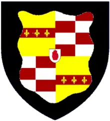 | Arms | Quarterly, 1st and 4th, Or on a fesse Gules three Fleur-de-Lis of the first (Lennard); 2nd and 3rd, per pale Argent and Gules Barry of four, counterchanged (Barrett); all within a Bordure wavy Sable |