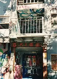 Much of the building, which was four stories high and a block deep, was covered with murals and graffiti.[35][36]