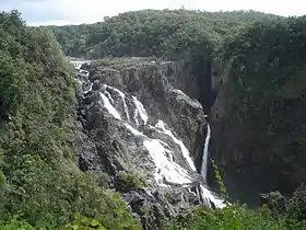Over time, some of the Mitchell River's former headwaters were diverted by natural forces into the Barron.[7] These include the Clohesy River and other tributaries that used to flow northwest to the Gulf of Carpentaria. With the extra water now flowing over the 260-metre (850 ft)-high Barron Falls, the steep, narrow Barron Gorge was formed. Much of the water that used to flow over the falls has now been diverted in upstream dams and used to generate electricity at the Barron Gorge Hydroelectric Power Station.[8]