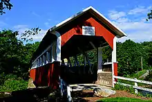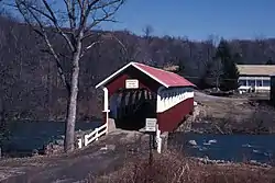 The Barronvale Bridge, also known as Barron's Mill Bridge, is a historic covered bridge at Middlecreek Township, in Somerset County, Pennsylvania crossing Laurel Hill Creek. At 162 feet 3 inches (49.45 m) it is the longest remaining covered bridge in Somerset County. It is 13 feet 10 inches (4.22 m) wide. The Burr truss bridge was built in 1902, and is one of 10 covered bridges in Somerset County.[2][3]