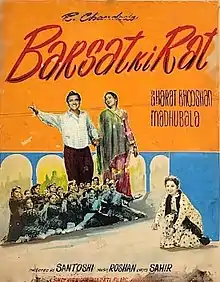 Barsaat Ki Raat (lit. 'A Rainy Night') is a 1960 Indian Hindi-language romantic musical film directed by P. L. Santoshi and produced by R. Chandra. Starring Madhubala, Bharat Bhushan and Shyama, the film is considered a defining example of romantic musical film genre.