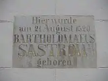 Bartholomäus Sastrow, sometimes anglicised Bartholomew, (21 August 1520 – 7 February 1603)[1] was a German official, notary, and mayor of Stralsund. He left a culturally and historically important autobiography, written in 1595 when he was 75 years of age. There is a plaque marking the site of his birth at Lange Straße 54 in Greifswald.