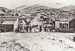 ![]() Ruby Hill historic mining town in 1878 served by Fred Bartine's waterworks | |