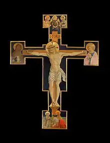 The Caporali Missal is notable for several reasons. First, it was a decorated religious book containing the texts of mass, which is unlike most of the projects Bartolomeo worked on. Second, this missal in particular was a joint project with his brother, Giapeco. This missal was executed for the Franciscan convent of San Francesco, Montone near Perugia, an all-male convent that's remains still exist today. The missal itself was completed in 1469. Third, it survives complete with all of its four hundred folios in extremely good condition. The most prominent decoration of the missal is assigned to three full-page illuminations. Compared to other missals in this period, the Caporali missal was spectacularly decorative.[5]