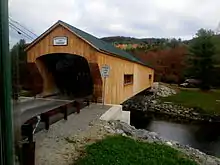 On August 28, 2011, the bridge was destroyed by flash flooding caused by excessive rainfall from Hurricane Irene's landfall on the U.S. East Coast.[3][4][5] An effort to rebuild the structure[6] was supported by town officials, who voted to use the bridge's insurance money to build another covered bridge.[7]