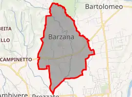 Barzana (Bergamasque: Barsana) is a comune (municipality) in the Province of Bergamo in the Italian region of Lombardy, located about 45 kilometres (28 mi) northeast of Milan and about 9 kilometres (6 mi) northwest of Bergamo. As of 31 December 2004, it had a population of 1,645 and an area of 2.1 square kilometres (0.81 sq mi).[3]