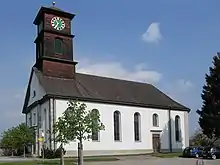 It was first recorded in year 761 as Pasnandingas.[2] However, earlier evidence of settlements includes, finds from the Neolithic period (e.g. on the Buchberg and Dickihof), and a Roman villa with graves in Unterschlatt. In the Early Middle Ages the monasteries of St. Gallen, Rheinau, Reichenau and Allerheiligen owned land in Basadingen. In 1260 the monastery of St. Katharinental bought Reichenau's Kehlhof (a farm owned by a monastery). By 1330 St. Katharinental had acquired many possessions in the village, as well as the low courts right and tithe rights. It became the sole landholder in the village. The high court rights were owned by the bailiwick of Diessenhofen by about 1300. In 1460 the high court transferred to the city of Diessenhofen, which also had the rights to the low court from 1527 until 1798.[2]