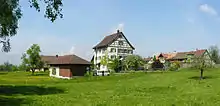 During the Middle Ages, the number of farms decreased from 40 in 1328 to only 16 in 1433, only to double again from 1470 to 1550. After that village population, land use and number of farms remained stable until 1800. In 1800, the number of farms rose sharply. Large forests also favored the expansion of the woodworking industry. In 1900 an embroidery factory and a brickyard offered some jobs, but the village retained a strong farming village character until around 1970. Since then agricultural amelioration (mostly, relocation of fruit orchards) and a strong population growth has led to changes in the appearance and character of the village.[4]