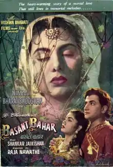 Basant Bahar (transl. Beautiful Spring), directed by Raja Nawathe,[1] is a 1956 Indian film. This musical[2] had nine outstanding songs, with lyrics written by Shailendra and Hasrat Jaipuri; and music composition by Shankar–Jaikishan. The movie is an adaptation of the Kannada novel Hamsageethe by TaRaSu.[3] Hamsa means swan and Geethe means song. It is believed that before a swan dies, it will sing without opening its mouth. That mutter of melody is believed to be unmatched since any scene of lyricism falls short of its reach.