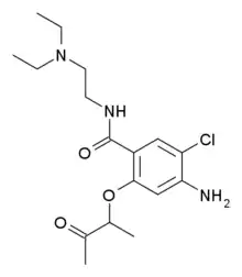 Batanopride (BMY-25,801) is an antiemetic drug of the benzamide class which acts as a selective 5-HT3 receptor antagonist.[1] It was trialled to reduce nausea during cancer chemotherapy, but was never approved for medical use due to dose-limiting side effects including hypotension and long QT syndrome.[2]