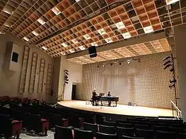 During this time the college began to compete athletically with Colby College, and in 1964, with Bowdoin created the Colby-Bates-Bowdoin Consortium.[42] In 1967, President Thomas Hedley Reynolds promoted the idea of teacher-scholars at Bates and secured the construction of numerous academic and recreational buildings.[43] In 1984, Bates became one of the first liberal arts colleges to make the SAT and ACT optional in the admission process.[44] Reynolds began the Chase Regatta in 1988, which features the President's Cup that is contested by Bates, Colby, and Bowdoin annually. In 1989, Donald West Harward became president of Bates and greatly expanded the college's overall infrastructure by building 22 new academic, residential and athletic facilities, including Pettengill Hall, the Residential Village, and the Coastal Center at Shortridge.[45][46] During the 1990s (and mid 2000s), Bates consolidated its reputation of being a "playground for the elite",[47] by educating upper-middle-class to affluent Americans,[48][49][50] which lead to a student protests and reforms to make the college more diverse both racially, and socioeconomically.[51][52]
