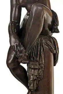The subject of a nude, bathing female figure has been a topos of ancient art. One of the most famous examples is the Crouching Venus, a Hellenistic model of Venus surprised at her bath. The goddess Venus in Roman times embodies beauty, desire, sexuality, fertility, femininity, love and victory ("Venus Victrix"). As Venus Genetrix, the mythological ancestor to Julius Caesar, she played a central role in the political representation of the Julio-Claudian dynasty. The rebirth of the gods of antiquity in the monumental sculpture of the Renaissance took place relatively late, significantly later than in painting. In monumental sculpture, Jacopo Sansovino (1486-1570) seems to have been the first modern sculptor to bring them back to life and to make two figures of Venus, now lost. Towards the middle of the 16th century the imitation of ancient sculptures of Venus became diffused in contemporary creations. The ancient image of the goddess found true rebirth with Giambologna, who tackled all the types of ancient representation known at the time and who made it a fundamental subject in his art. His figures of the goddess are possibly the only ones to have achieved the status of the great models from antiquity.[8]