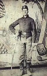 The battery's initial enlistments expired December 19, 1864, but these veterans were not mustered out of service until December 24, 1864, at Louisville, Kentucky.[120] New recruits were brought into replace those who had been discharged; these continued to serve until July 15, 1865, when they were discharged near Chattanooga, Tennessee.[121][122]