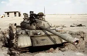 ![]() A disabled Iraqi T-55 tank at the airfield on 2 March 1991 | |||||||