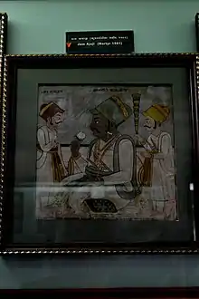 Durso Adho, the court poet of Akbar, wrote a poetry with mixture of love and heroic moods titled Kumar Shri Ajajini Bhuchar Morini Gajgat.[10][20] The event is described in the works of court poets of Nawanagar; Vibhavilas (1893) by Vajmalji Mahedu and Yaduvansh Prakash (1934) by Mavdanji Ratnu.[2] Gujarati author Jhaverchand Meghani had written a novel, Samarangan in 1938 based on the event.[6][7] Harilal Upadhyay wrote Ranmedan (1993) focused on the background which led to the battle.[21]