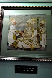 Morbi was granted to Rao Bharmalji as a jagir for his service. Jam Sataji returned Nawanagar in 1593 AD (Vikram Samvat 1649). He lived at Nawanagar but the affairs of the state were managed by the Mughal deputy with his concert. Jasaji, the second son of Jam Sataji, was kept at Delhi for some time.[3][5] In the absence of Sataji, Kalabai; the queen of Kunwar Bhanji, the son of Rana Ramdevji of Ranpur; had conquered the areas formerly lost to Nawanagar with the help of Mers and Rabaris and established its new capital at Chhaya village.[14]