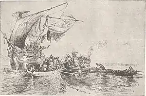 The pirates quickly took control of Comet and put most of the crew in chains before attempting to flee back to their islands. The British captain and some crewmen managed to lower a boat and paddle to Porpoise, which was heading back to find Comet after the Americans heard shooting. Lieutenant Conner gave the order to open fire and give chase to the Greek pirates, who were trying to tow Comet away. However, because of the calm, the sailors had to propel their ship by oars. When rowing failed to close the range, Lieutenant Cooper dispatched four boats with thirty-five men under the command of Lieutenant Louis M. Goldsborough. With boats the Americans felt they could close the distance between the two vessels faster and cut out the captured brig. It was now dark, so when the Greeks opened fire on the approaching boats they had trouble hitting their targets. No Americans were hurt throughout the action.[1][3]