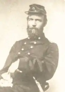 The rain continued on March 31.[71] Under Sheridan's direction, Brigadier General (Brevet Major General) Wesley Merritt sent two of Devin's brigades toward Five Forks and held one brigade in reserve at J. Boisseau's farm.[72][73][74][75] Sheridan sent brigades or detachments from Major General George Crook's division to guard two fords of a swampy stream just to the west, Chamberlain's Bed, in order to protect the Union left flank from surprise attack and to guard the major roads.[72][76] Dismounted Union troopers of Colonel (Brevet Brigadier General) Charles H. Smith's brigade armed with Spencer repeating carbines held up Fitzhugh Lee's cavalry attack at the southern ford, Fitzgerald's Ford.[77][78] At about 2:00 pm, Pickett's force crossed the northern ford, Danse's Ford, against a small force from Brigadier General Henry E. Davies's brigade, which was left to hold the ford while much of the brigade unnecessarily moved to help Smith and could not return fast enough to help the few defenders.[79]