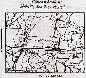 The Chief of Staff of the Islamic Army of the Caucasus in Myusyuslyu, Nazım Bey, instructed Osman Bey to carry out an intelligence assault on Armenian-Soviet forces. According Topal Osman's order, the 28th Battalion took action on 17 June against the Armenian-Bolshevik forces to the west of Garamaryam. Continuing the operation along the road, the 28th Battalion were caught in a Soviet ambush having failed to take timely measures. After a bloody fight, the Ottoman forces retreated to the village of Veysalli.[20]