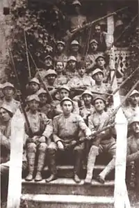 Soviet historians claim the Ottoman Army had a numerical advantage over the Bolsheviks, but Mustafa Görüryılmaz notes that in reality, the opposite was true. He writes that "during the beginning of the battle, the Turkish military force that had reached Azerbaijan numbered fewer than five thousand. While the Red Army force had surpassed 30 thousand soldiers with the arrival of the Armenian groups".[9] The number of Azerbaijani soldiers who fought in the battle is unknown but had to be fewer than 5,000. The first military institution, the Azerbaijani Special Corps (ASC) led by Ali-Agha Shiklinski, which was established on 26 June, consisted of fewer than 5,000 men, although their possible involvement is unclear. Ali-Agha Shiklinski's minor involvement in the battle also indicates that the ASC might have fought alongside the Ottoman army.[10] Furthermore, an unknown number of volunteers from Aghdash, Aghstafa, Aghsu, Barda, Ganja, Goychay, Shaki, Yevlakh and Zagatala also joined the Ottoman–Azerbaijani coalition forces.[11][12][13]