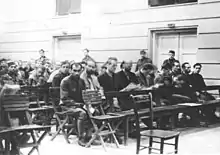 The Liberation Front of the Slovene Nation organized trials for captured Yugoslav soldiers between 9 and 11 October 1943.[28] The Liberation Front of the Slovene Nation organized a trial to 21 captured Yugoslav officers, condemning to death 16 of them while 5 were sentenced to forced labor.[29]