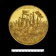Despite the defeat the previous year, the Swedish navy was in the Spring of 1677 still numerically superior to the Danish navy and posed a considerable threat. The Danish sea forces were reorganized off Zealand and the need to secure the sea lanes between Denmark and Skåne was of paramount importance. The Dutch allies of Denmark promised to send reinforcements. Cornelis Tromp, an experienced admiral who commanded the combined Dutch-Danish fleet the year before had been sent to speed up the arrangements, but would not reach Copenhagen until 2 July.[3] The Swedish navy, on the other hand, had major difficulties securing supplies and equipment for its ships and were unable to recruit enough manpower.[4]