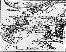 Meanwhile, several raids were undertaken by the Australian Light Horse and the Bikaner Camel Corps, accompanied by the Egyptian Camel Transport Corps carrying supplies, rations and ammunition.[14] The purpose of these raids was to destroy water sources on the central inland route, which had been used by the Ottomans during the First Suez Offensive in late January and early February 1915.[14][15]