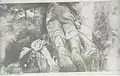 Donnelley's posse included at least five policemen, a few armed civilians, and the "county coroner and physician". After stopping in Little High Rock Canyon on February 13, they continued despite extreme cold and winter weather. Over 200 miles further and on February 25, the posse found Daggett and his family hiding in an area known as Kelley Creek, northeast of Winnemucca. It is unclear which side shot first, but a battle erupted that lasted for around three hours.[17] The women reportedly fought equally alongside the men. Father and chief Mike Daggett was one of the first casualties during the battle, but his death only made the members of his family desperately fight back harder; even as they were inevitably forced back. At some point during the conflict the remaining Daggetts had run out of ammunition for their guns and were forced to resort to bows, spears and tomahawks. By the end of the battle only four of the original twelve Daggett family members were still alive: a sixteen-year-old girl and three young children, who were taken into police custody. One member of Donnelley's posse, Deputy Ed Hogle of Eagleville, was mortally wounded during the fight.[18] Two other young Daggett children were also reported to have been shot inadvertently.[15][19] After the battle was over, the posse found evidence linking the killings in Little High Rock Canyon to the natives. Other than Mike's war bonnet, the posse found guns and a watch that had belonged to Harry Cambron, identified by brother Ben Cambron.[14]