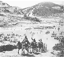 After three days fighting at the sectors of Pehčevo and Mehomia, however, the Greek forces retained their positions.[8] On 30 July, the Greek headquarters planned to launch a new attack in order to advance towards the sector of Gorna Dzhumaya.[15] On that day hostilities continued with the Bulgarian forces deployed on strategic positions north and northeast of the town.[lower-alpha 2]