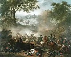 The Battle of Lesnaya (Russian: Битва при Лесной, romanized: Bitva pri Lesnoy; Swedish: Slaget vid Lesna; Polish: Bitwa pod Leśną) was one of the major battles of the Great Northern War. It took place on October 9 [O.S. September 28] 1708[lower-alpha 2] between a Russian army of between 26,500 and 29,000 men commanded by Peter I of Russia, Mikhail Mikhailovich Golitsyn, Aleksandr Danilovich Menshikov, Christian Felix Bauer and Nikolai Grigorovitj von Werden and a Swedish army of about 12,500 men commanded by Adam Ludwig Lewenhaupt and Berndt Otto Stackelberg, at the village of Lesnaya, located close to the border between the Polish–Lithuanian Commonwealth and Russia (now the village of Lyasnaya, south-east of Mogilev in Belarus). The Swedes were escorting a supply column of more than 4,500 wagons for their main army in Ukraine.