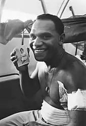 At 18:00 two RAAF UH-1B Iroquois piloted by Flight Lieutenants Cliff Dohle and Frank Riley arrived over D Company's location with the ammunition resupply, and guided by red smoke thrown by the infantry, they hovered in the heavy rain just above the rubber trees near a small clearing.[107] Because they were to be dropped from some height, the wooden outer crates were wrapped in blankets for the wounded.[117] Aboard the helicopters the 6 RAR Regimental Sergeant Major, Warrant Officer Class One George Chinn and the Administration Company commander, Major Owen O'Brien, pushed the crates out to the soldiers waiting below, many of whom were now very low on ammunition. The boxes landed in the centre of the position and the RAAF pilots were later praised for their skill and daring.[107] Without tools to cut the metal straps on the crates, the infantry had to smash them open using machetes or the butts of their rifles.[117] Under heavy fire Warrant Officer Class Two Jack Kirby, the Company Sergeant Major, and Sergeant Neill Rankin, the 12 Platoon sergeant, began to distribute the ammunition. However, while the machine-gun rounds were pre-loaded in belts, the rifle rounds were still in bandoliers, complicating Kirby's job and forcing the soldiers to reload their own magazines as they struggled to keep the ammunition clean in the mud and rain.[107] The resupply retrieved the situation for D Company.[105] Prior to its arrival they had been down to their last 100 rounds, but now the Australians resumed firing, forcing the VC back for a third time.[117][118]