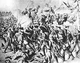 The Battle of Małogoszcz took place on 24 February 1863 near Małogoszcz in the Holy Cross voivodeship. It was the one of biggest battles of the January Uprising. Polish general Marian Langiewicz began concentrating his forces in the Holy Cross Mountains; he wanted to attack Warsaw with them, but the Russians unveiled his attempts. He was attacked by a few Russian forces simultaneously. Langiewicz defeated them all in many skirmishes. Polish forces grew to 2,600 men. Russian colonel Dobrowolski attacked near Małogoszcz. The Russians shelled Polish positions, but their attack was eventually smashed by a Polish cavalry counterattack. Langiewicz ordered a retreat. The battle was indecisive - the Russians failed to annihilate the Polish army and the Polish failed to defend their positions.