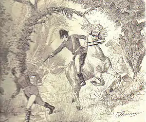 ![]() A painting of the capture of Mariano Matamoros y Guridi by the royalist soldier, Eusebio Rodríguez at the Battle of Puruarán. | |||||||