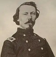 Although the Union force suffered only about 50 casualties, the loss of 2nd Brigade, 2nd Division commander, Colonel Patrick E. Burke, formerly commander of the 66th Illinois Infantry Regiment, who was mortally wounded and died soon after the battle, was significant.[5][8][12][13][14]
