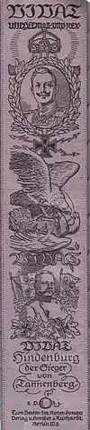 Hindenburg was hailed as an epic hero, Ludendorff was praised, but Hoffmann was generally ignored by the press. Apparently not pleased by this, he later gave tours of the area, noting, "This is where the Field Marshal slept before the battle, this is where he slept after the battle, and this is where he slept during the battle." However, Hindenburg countered by saying, "If the battle had gone badly, the name 'Hindenburg' would have been reviled from one end of Germany to the other." Hoffmann is not mentioned in Hindenburg's memoirs. In his memoirs Ludendorff takes credit for the encirclement[60] and most historians give him full responsibility for conducting the battle. Hindenburg wrote and spoke of "we", and when questioned about the crucial tête-à-tête with Ludendorff after dinner on 26 August resolutely maintained that they had calmly discussed their options and resolved to continue with the encirclement. Military historian Walter Elze wrote that a few months before his death Hindenburg finally acknowledged that Ludendorff had been in a state of panic that evening.[61] Hindenburg would also remark, "After all, I know something about the business, I was the instructor in tactics at the War Academy for six years".[62]