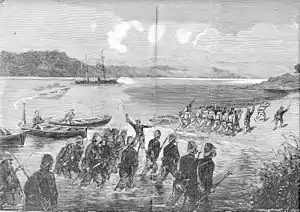 - The landing force included the 27th and 31st Companies, 1st Marine Infantry Regiment (Captains Moniot and Sorin) and the 22nd Marine Artillery Battery (Captain Luce). The detachment of Cochinchinese riflemen was commanded by Lieutenant Vincentelli. The marine infantry were under the overall command of Captain Radiguet.
