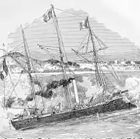 The Battle of Thuận An (20 August 1883) was a clash between the French and the Vietnamese during the period of early hostilities of the Tonkin Campaign (1883 to 1886). During the battle a French landing force under the command of Admiral Amédée Courbet stormed the coastal forts that guarded the river approaches to the Vietnamese capital Huế, enabling the French to dictate a treaty to the Vietnamese that recognised a French protectorate over Tonkin. The French strike against the Vietnamese in August 1883, sanctioned by Jules Ferry's administration in Paris, did more than anything else to make a war between France and China inevitable, and sowed the seeds of the Vietnamese Cần Vương national uprising in July 1885.[1]