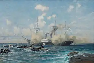 The Battle of Tres Forcas was a battle on 7 August 1856 between boat crews from the Prussian Navy corvette SMS Danzig (then on a foreign cruise, commanded by Prince Adalbert of Prussia) and the Berber Riffians. It occurred at Cape Tres Forcas in Morocco, and was one of the first examples of Prussian or German gunboat diplomacy.
