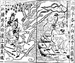 ![]() A Qing dynasty illustration of Sun Jian's forces (right) attacking Liu Biao's forces (left) | |||||||