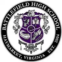 Battlefield High School is a public high school within the Gainesville District of unincorporated Prince William County, Virginia, United States, and is part of the Prince William County Public Schools. The school is located north of the town of Haymarket bearing a "Haymarket, Virginia" address. Battlefield is one of two Centers for Information Technology in the school division. In the 2010-2011 football season Battlefield's team won the Cedar Run District Title, Northwest Region Title, and the AAA Division 6 State Title.