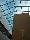 Many of the interior trim aspects were originally painted a salmon color, but after the selection of the school colors (purple, black, and silver), many trim sections were repainted in school colors. The floors of the school feature black tile borders along wall edges and school-colored purple lockers, configured "over-under" to provide two lockers per bay. The walls are white and power-efficient fluorescent lighting is used throughout. However, the building's lackluster design only provides natural light through few windows on the outside. An atrium at the center of the school is a functional architectural detail that creates the largest source of natural light in the building. In Summer of 2009, much of the interior trim of the school, some of which was still salmon in color since the original opening of the building, was repainted in matching Battlefield purple.