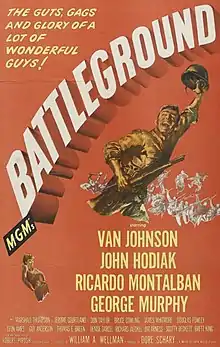 Battleground is a 1949 American war film that follows a company in the 327th Glider Infantry Regiment, 101st Airborne Division as they cope with the siege of Bastogne during the Battle of the Bulge, in World War II. It stars Van Johnson, John Hodiak, Ricardo Montalbán, and George Murphy, features James Whitmore, and was directed by William A. Wellman from a script by Robert Pirosh.