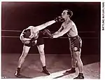 Alfred expects that he will have to actually fight one of Battling Butler's opponents, and trains as best he can in a comedic training scene. On the day of the fight, he reluctantly dons his boxing trunks and gloves, expecting to be badly beaten. To his great relief, the real Battling Butler shows up, fights, and wins. However, the Battler keenly resents having been impersonated in public by a feeble milquetoast like Alfred. He demonstrates his displeasure privately in the locker room, by beating the jello out of Alfred with a humiliating sequence of punishing blows to the head and body. This continues until Alfred sees that the door of the locker room is open and his beloved is watching. Inspired, he begins fighting back, his confidence and fury increasing with each blow he lands. To everyone's surprise, the beating turns into a real contest, and culminates in a knockout victory for Alfred, who, in a frenzy of unaccustomed blood-lust, continues savaging the unconscious Battler until the Battler's trainer and manager rush in and restrain him. Shocked by his own prowess, he confesses his deception to his beloved. She forgives him, and they celebrate with an evening on the town, Alfred still dressed in his boxing trunks and athletic shoes, but also wearing a top hat and carrying a classy walking stick.