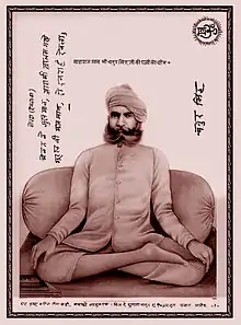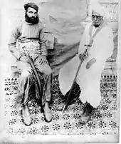 ![]() A photograph of Bavji Chatur Singhji, left, with his Guru Thakur Gumaan Singhji (c. 1913) |