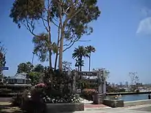 Bay Island is Newport Harbor's only natural island. Although not underwater, it was a mud flat with one small hill of dry land when R. J. Waters and Rufus Sanborn (Vice President of the Citizens National Bank of Los Angeles) bought it in 1904 for $350.[1] They recognized good duck hunting there and organized a gun club. Sanborn built a small shack on the dry hill and welcomed hunters. Although at first, hunters could only arrive at low tide, it was not long until a walk on pilings was constructed. It was so popular the first year that, by the second year, a poker club was added and women were invited.[2]