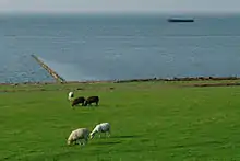 The Wadden Sea provides migrating birds with shelter and is home to various species of white fish, perch, pike, carp, asp, tench, catfish and zander.[3] The land around the bay is grazed by sheep and goats, the natural lawn mowers on the dykes.