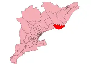 ![]() Bay of Quinte in relation to other electoral districts in Southern Ontario | |||